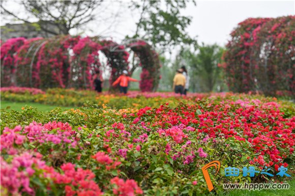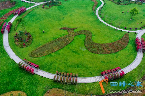 中梁山花博园三角梅园,九龙坡城市品牌形象标志镶嵌在草坪之中。 通讯员 陈林 摄
