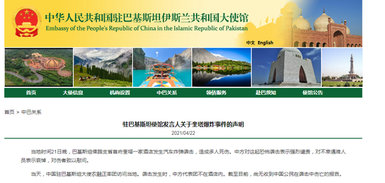 :中国驻巴基斯坦使馆发言人关于奎塔爆炸事件的声明
