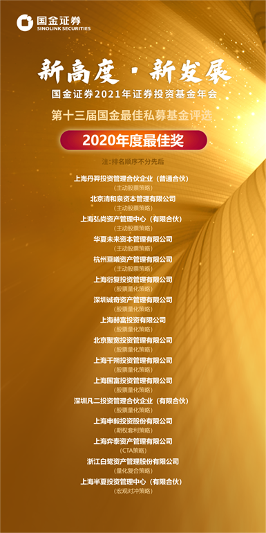 日前(4月22日),由主办的第十三届国金证券最佳私募证券投资基金评选结果正式揭晓。