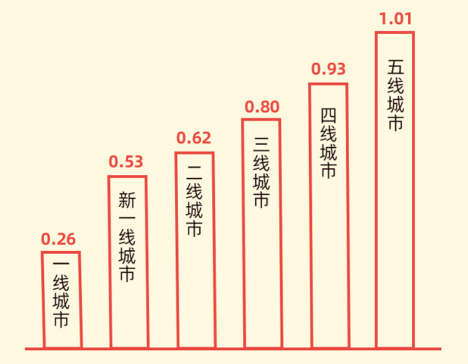 调研用户中五线城市书房拥有率是一线城市的三倍多。不仅如此,在有书房人群的书房面积调研数据上,地县级城市平均书房面积也要明显比一线、新一线城市更大。报告显示,有书房家庭的平均书房面积为8.6㎡,一线、新一线城市的家庭书房平均面积在8㎡以下,二三线城市在8-9㎡之间,而四五线城市则接近10㎡。大城市“书房难求”。上海、北京、深圳、广州、南京是全国人均书房面积排名垫底的五大城市。