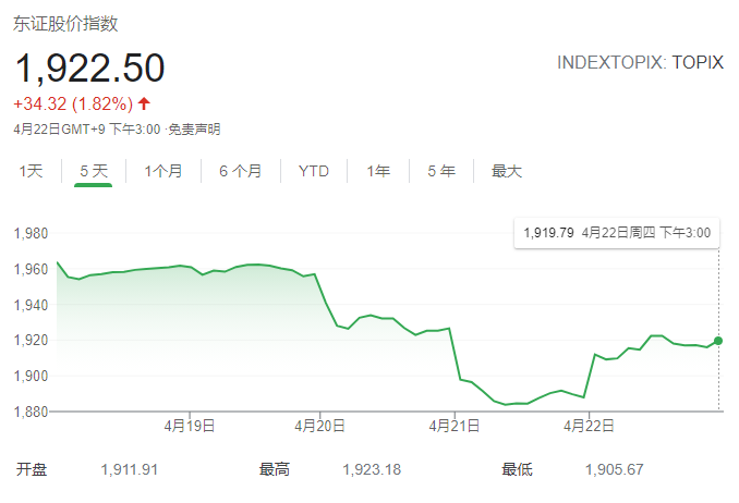 受此消息鼓舞,周四日股强劲反弹,日本东证指数收涨1.8%,报1922.5点,日经225指数收涨2.4%,报29188.17点。