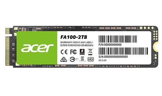 IT之家了解到,acer FA100 系列固态硬盘为 M.2 2280 规格,采用 PCIe 3.0×4 通道,容量范围 128GB-2TB,最大顺序读写速度为 3300 MB/s、2700 MB/s。