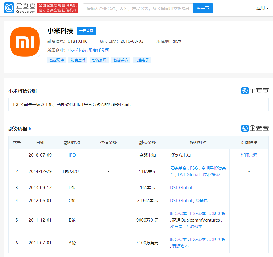 本网讯_:小米科技被法院强制执行 执行标的为32310元