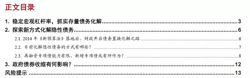 2018年政府工作报告要求“防范化解地方政府债务风险,严禁各类违法违规举债、担保等行为,省级政府对本辖区债务负总责,省级以下各级地方政府各负其责,积极稳妥处置存量债务”,随后中央陆续下发《中共中央国务院关于防范化解地方政府隐性债务风险的意见》(中发〔2018〕27号),和《中共中央办公厅国务院办公厅关于印发〈地方政府隐性债务问责办法〉的通知》(中办发〔2018〕46号),文件并未公开,但从部分地方政府的化债文件中可以有所了解。