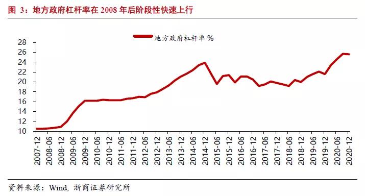 我们认为,当下可能是化解地方政府隐性债务问题的重要窗口期。其一,得益于疫情有效防控和经济快速修复,大国博弈背景下中国在经济层面占据优势,化解风险抢占先机。其二,在《新预算法》与2017年《关于进一步规范地方政府举债融资行为的通知》等文件的要求下,近年来政府举债机制逐步透明化、清晰化,开正门、堵后门,严禁新增隐性债务,风险主要聚焦存量债务,各省市逐年化解,2021年是加速化解历史包袱的机遇期。其三,2020年疫情对财政和债务稳定性带来冲击,财政收支平衡压力增加,新增债务增多且存量债务付息压力提升,2021年财政不急转弯,体现了保障经济稳定的背景下,积极应对债务风险的思路。