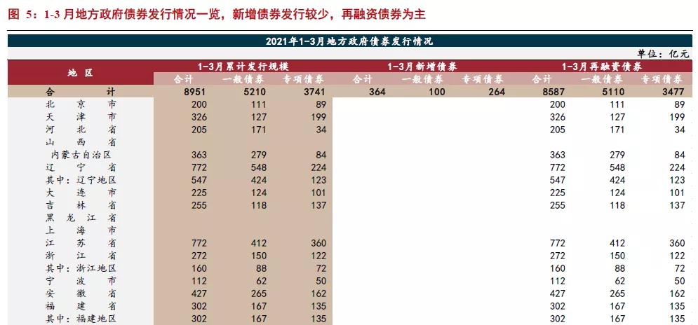 财政政策重视风险防范,抓实存量债务化解。3月15日国常会表示“要保持宏观杠杆率基本稳定,政府杠杆率要有所降低”,我们认为,从财政角度理解降低政府杠杆率指向两个方向,一方面是做大分母端,促进高质量发展和结构转型要求财政政策要提质增效、更可持续,保持适度支出强度,增强国家重大战略任务财力保障,促进科技创新、加快经济结构调整;另一方面从分子端入手,解决债务问题,要求重视风险防范,化解债务压力,特别是存量债务化解问题。