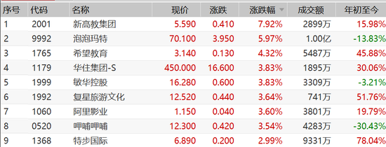 消费股走高,涨8%,涨近6%,、华住、呷哺、复星文旅等涨超3%,涨超6%,涨超4%。