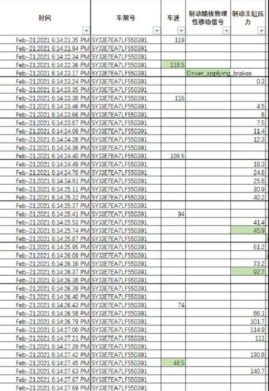 此外,在车辆发生事故前的30分钟内,驾驶员正常驾驶车辆,有超过40次踩下制动踏板的记录。