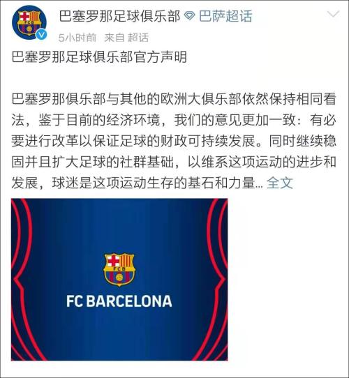 巴塞罗那足球俱乐部官方声明
