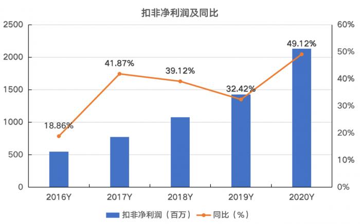 2020年,爱尔眼科增速下降,但公司扣非净利润增速不降反升,分季度看,一季度净利润增速为负增长,二季度恢复接近2019年同期水平,三、四季度增速提升快。?