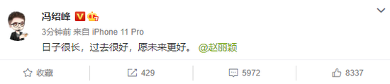 随后,冯绍峰本人发布微博回应,表示“日子很长,过去很好,愿未来更好”。