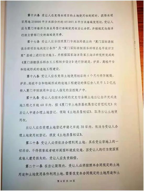香山游艇土地出让合同(部分)? 图片来源:受访者供图