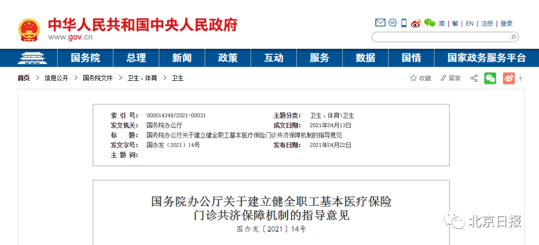 22日,国务院办公厅发布《国务院办公厅关于建立健全职工基本医疗保险门诊共济保障机制的指导意见》。