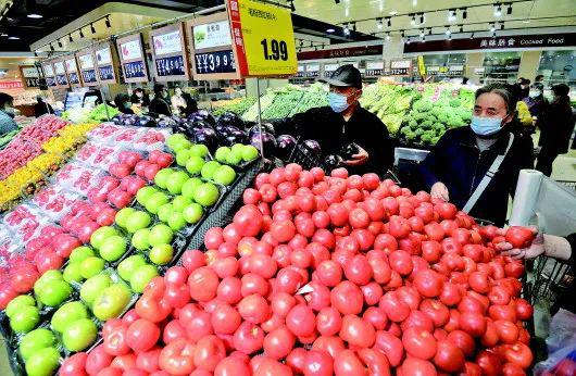 4月9日,顾客在河北省邯郸市一家超市选购蔬菜。