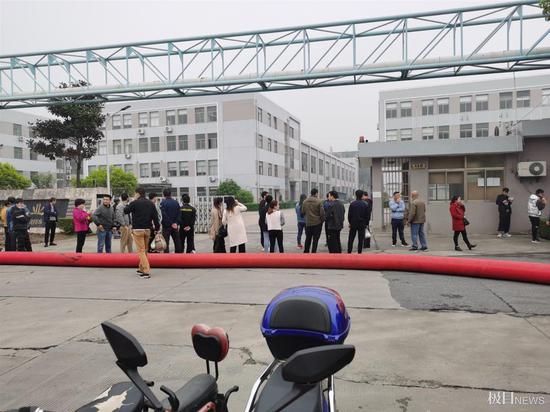 在距离起火工厂不远处的林盛路和亭华路交叉口,记者看到:亭华路道路一侧已被封锁,路边有民警值守。民警让许多去厂里上班的工人将骑的车就近停在路边,步行进去。