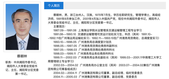 2020年5月,蔡朝林再度转岗,任揭阳市委书记。