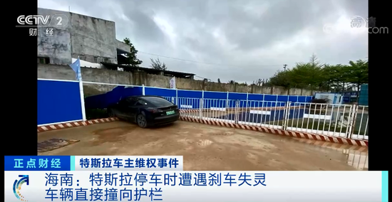 海南:特斯拉停车时遭遇刹车失灵 车辆直接撞向护栏