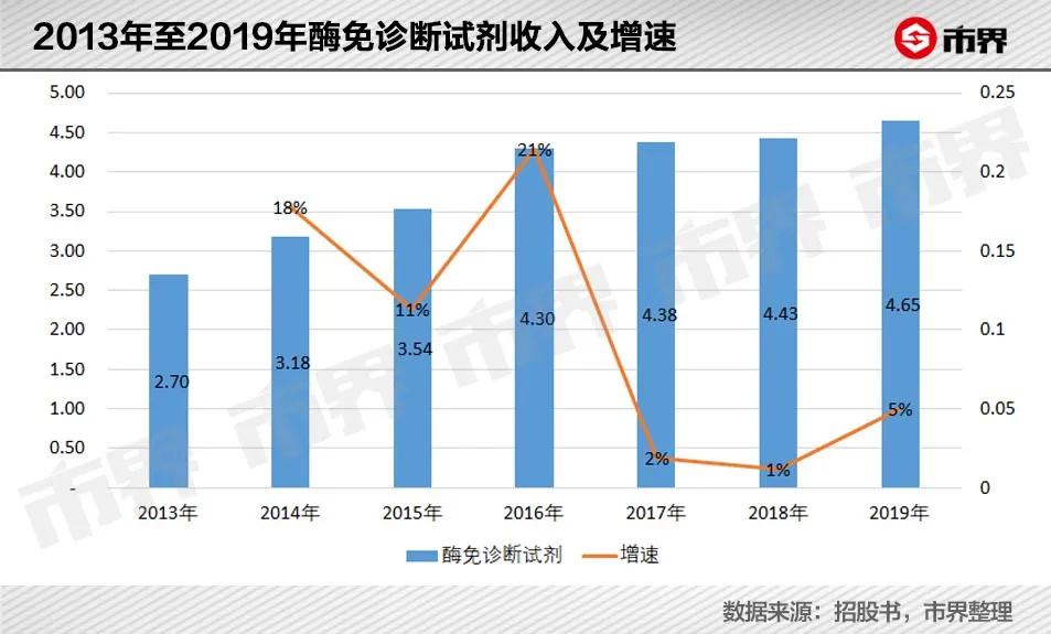 首先, 自2017年开始,酶免试剂作为公司试剂收入的主力,增速明显放缓,平均增速只有3%,似乎进入了瓶颈期 。