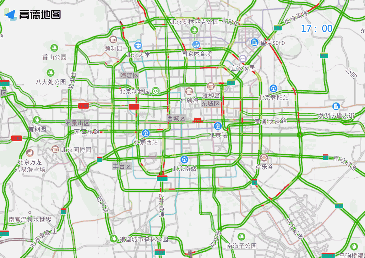 工作日早晚高峰城区交通压力大,各条环路、联络线的部分路段以及学校、医院周边出现车流集中的情况。出行前请关注北京交警通过官方微博、广播等发布的实时路况信息,避开车流量大、行驶缓慢、发生事故的路段。驾车通勤时应时刻保持精神集中,关注路面情况,谨慎驾驶。驾车接送学生的家长朋友,在校园周边停车时应短时间停放、即下即走,避免影响其他车辆通行。建议市民朋友错峰出行,乘坐地铁等公共交通工具或骑自行车。