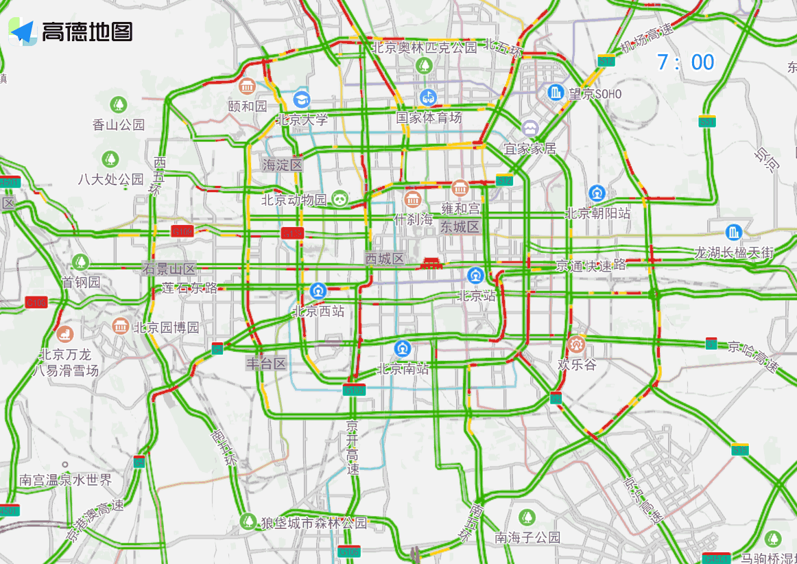 工作日上午时段,预计同仁医院、肿瘤医院、北京医院、儿童医院、北医三院等医院周边道路和桥区节点将出现车流集中的情况,高峰时段为上午7—10时,建议适时避开医院周边行驶缓慢的道路。