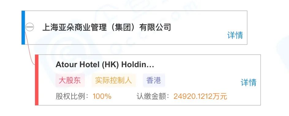 股权方面,亚朵酒店的主公司为上海亚朵商业管理(集团)有限公司,实控人为Atour Hotel (HK) Holdings Limited,注册地在香港,是亚朵酒店的全资控股公司。