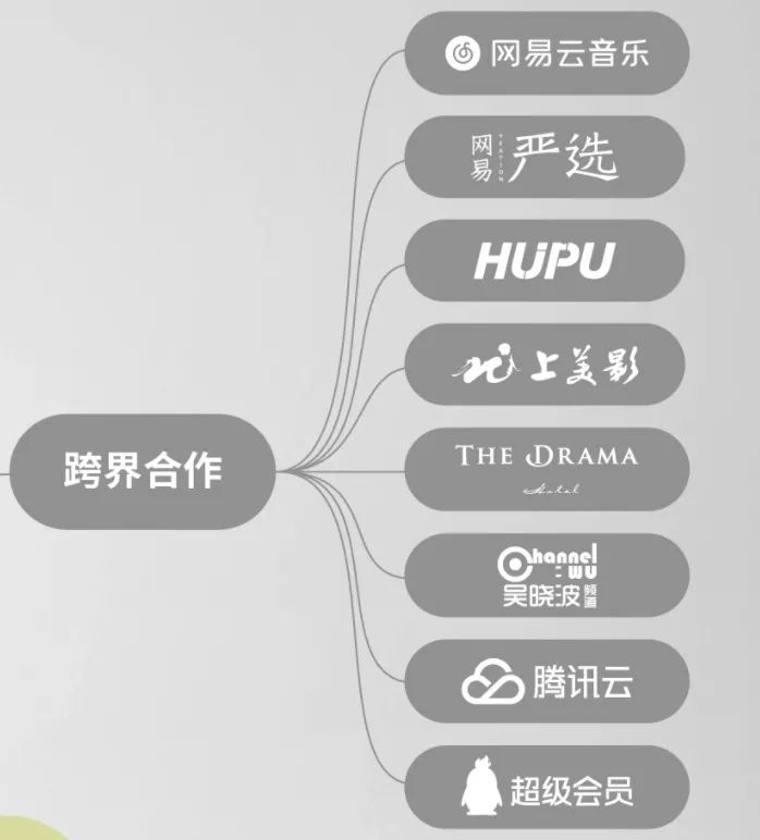在官网的品牌框架中,跨界合作的企业包括网易云音乐、网易严选、虎扑等8个热门IP。