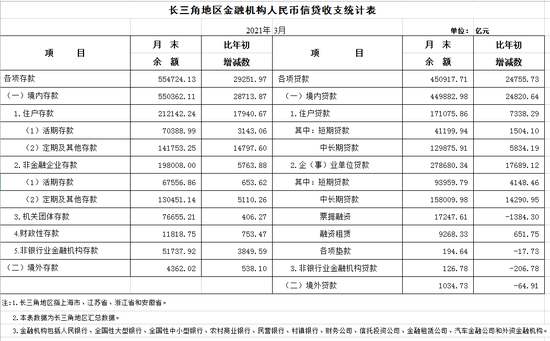 [1] 本外币、人民币和外币存款含非银行业金融机构存放款项,本外币、人民币和外币贷款含拆放给非银行业金融机构的款项;所有数据为上海市、江苏省、浙江省和安徽省的汇总数。