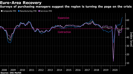 欧元区经济全面复苏 服务业恢复增长、制造业增幅创纪录