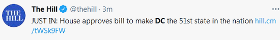 另据中国新闻网,在当天的投票中,216票赞成、208票反对,投票结果基本按照党派分布划线。该法案提议将华盛顿特区设为第51个州,并将拥有2个参议员席位和1个众议员席位,而白宫、国会和国家广场所在地仍将作为联邦特区。