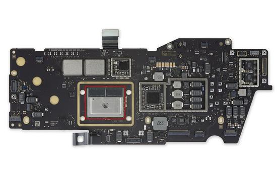 红圈内:Macbook Air 13里的苹果M1芯片(图源:网络)