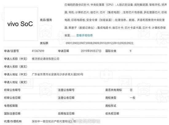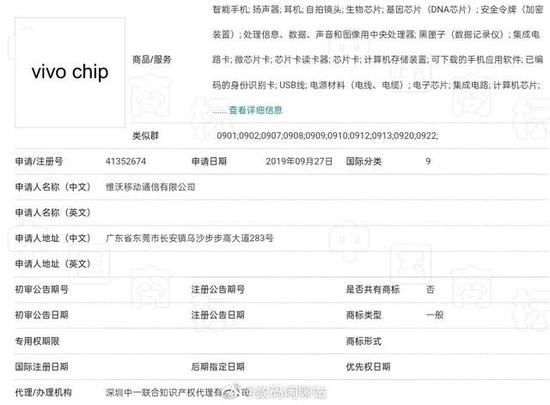 网传的vivo芯片商标注册图(图源:网络)