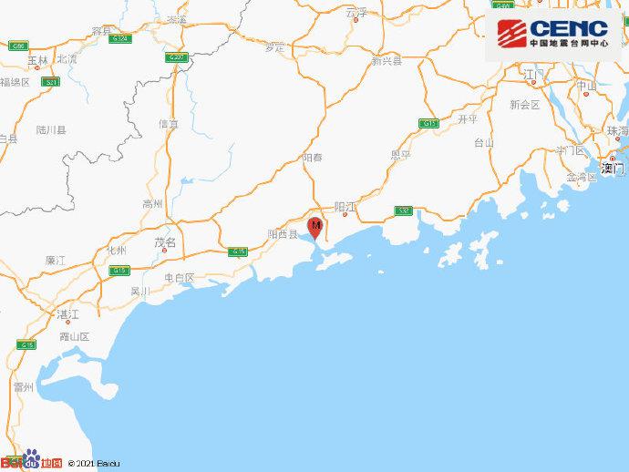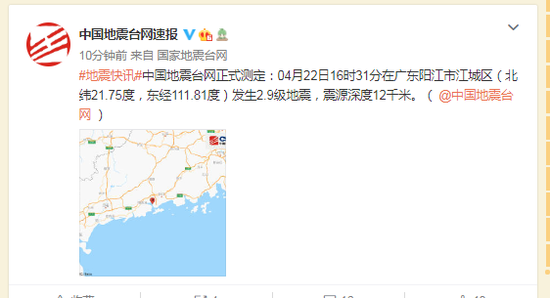 曲谱网_:广东阳江市江城区发生29级地震,震源深度12千米