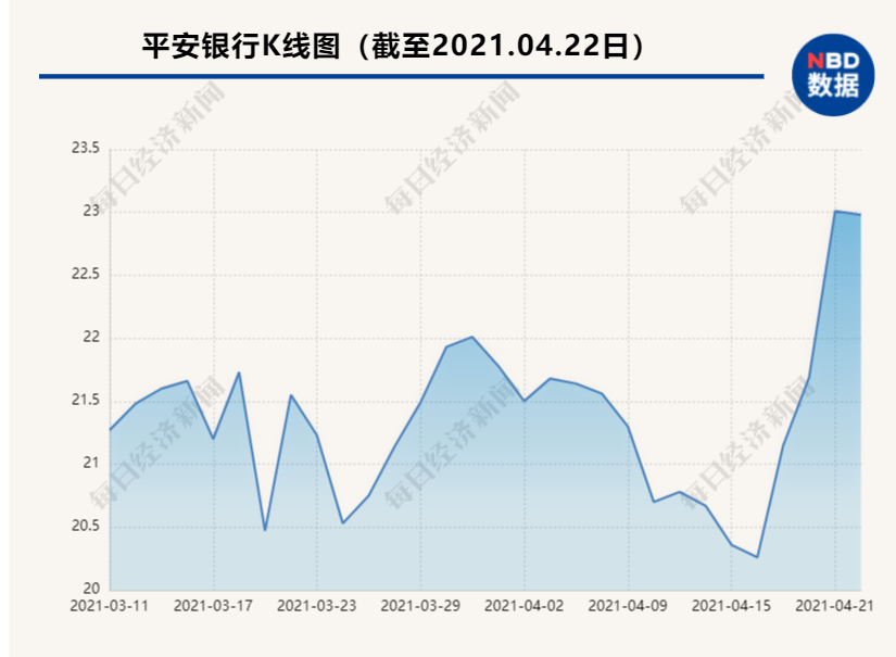 亮眼的成绩单使得平安银行股价大涨,发布一季报的第二天,4月21日,平安银行股价涨至23.01元,涨幅6.09%,银行板块也在当天表现强劲。不过涨势并没有持续,截至4月22日收盘,银行板块跌幅0.94%。