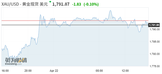 现货黄金隔夜大涨后,日内震荡下跌0.1%,报1791.87美元/盎司。