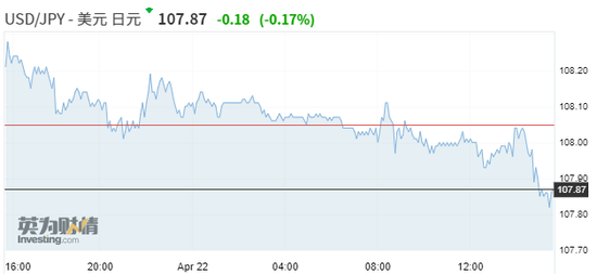 美元兑日元日内下跌0.17%,报107.87。