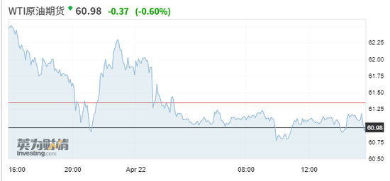 WTI原油日内下跌0.6%,报60.98美元/桶。