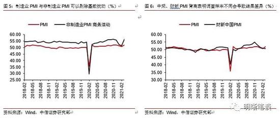但另一方面,PMI分析法也有一定的缺陷,如无法下沉行业维度来观察不同行业的景气状况,同时由于PMI采取抽样调查的方式进行统计,样本行业的选取标准也可能会对统计结果产生影响。第一,尽管PMI数据囊括了制造业和非制造业,但却无法进一步下沉行业维度来观测特定行业的生产经营现状,难以区分不同细分行业的生产经营景气水平;第二,固定资产投资、工业增加值等宏观指标主要通过统计并加总方式得出,而PMI数据主要采用企业抽样+问卷调查的方式得到,样本行业的偏差可能会导致统计结果的差异,这也是为何中采PMI与财新PMI之间时有背离。同时,这种抽样调查的方式更容易受“幸存者偏差”影响,这也可能对PMI数据的指示意义产生影响。
