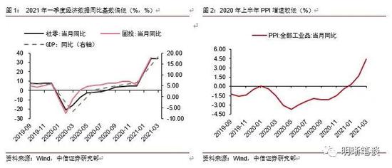 “基数”障目,难辨春秋。受基数效应影响,预计2021年各项经济数据将呈前高后低走势。对于通胀而言,基数效应下2021年PPI同比增速预计将呈先上后下走势。但过于强烈的基数效应导致经济数据的指示作用下降,同时也加大了宏观分析的难度,比如从3月的数据表现看,投资、消费等数据同比增速纷纷回落,但PPI同比增速延续上行,直观看像是一个滞胀格局,可能会导致市场对基本面与政策环境的认知出现差异。