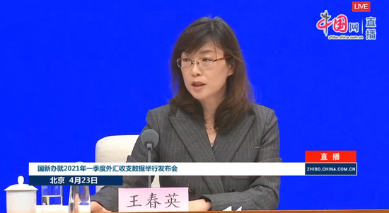 国务院新闻办公室定于2021年4月23日(星期五)上午10时举行新闻发布会,国家外汇管理局副局长、新闻发言人王春英介绍2021年一季度外汇收支数据,并答记者问。