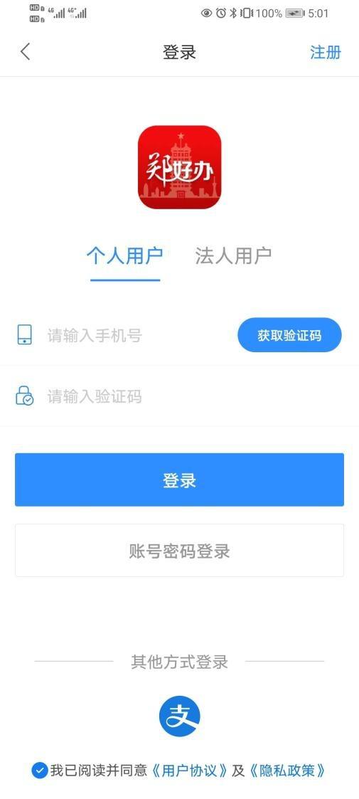 2。注册并登录“郑好办”。