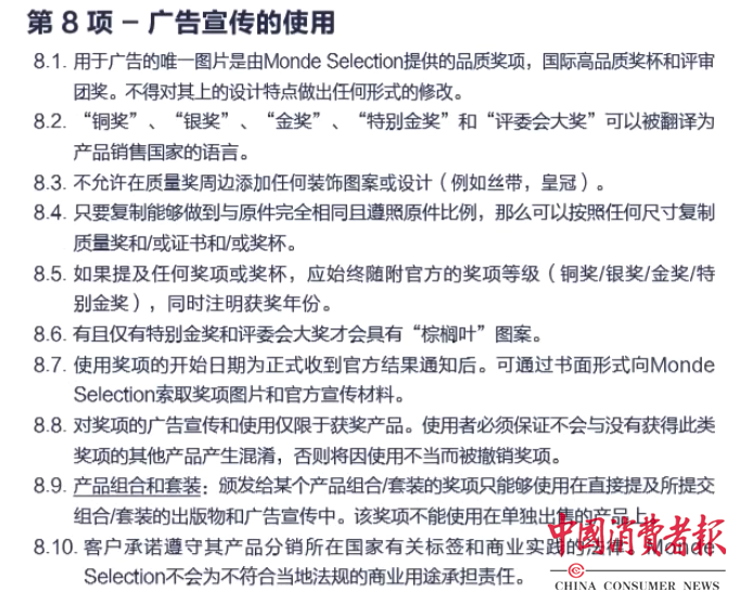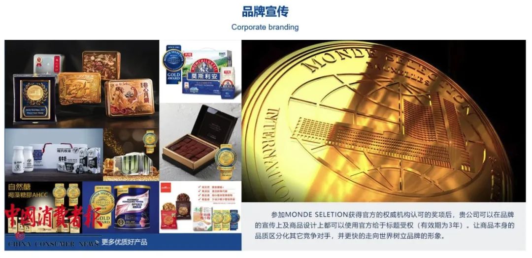对于商家来说,更看重的或许是这一“世界金奖”的营销价值。根据“世界食品品质评鉴大会”比利时官网描述,如果获奖,商家可以在品牌宣传和商品设计上免费使用官方给予的授权3年,并可以在包装上贴上耀眼的得奖标识。