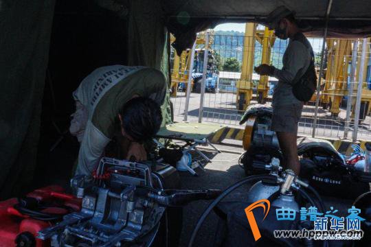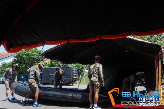 4月25日,搜救人员在印度尼西亚东爪哇省外南梦准备参与搜寻失联潜艇的工作。新华社发(库尔尼亚万摄)