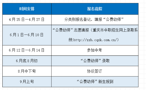 按照相关招生管理办法,初中毕业生应进行分类别报名登记,凡自愿报考2021年学前教育公费师范生的应届初中毕业生,须在2021年4月25日-27日分类别报名登记时,自愿选择填报“公费幼师”类别,同时可兼报普通高中,联招区县的可兼报联招。