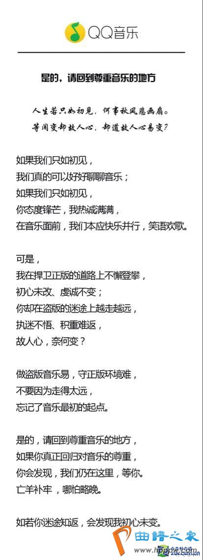 发文暗指封杀音乐软件由于盗版?歌词库软件