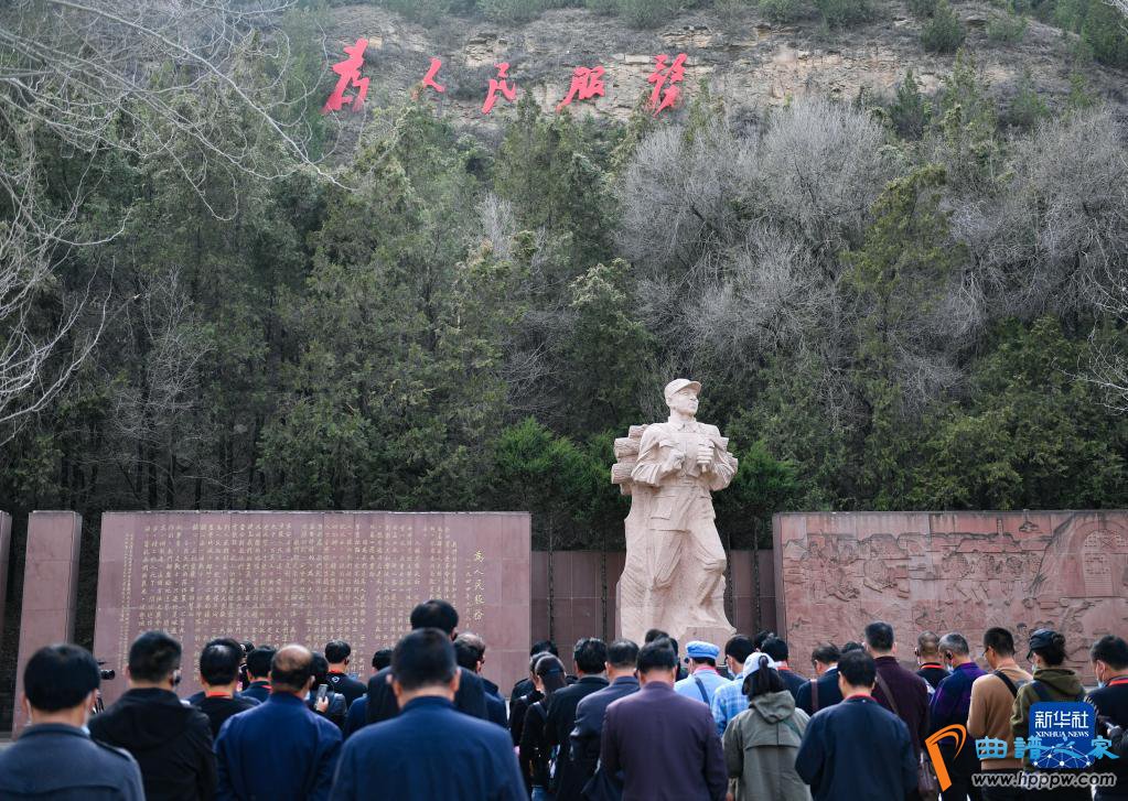 党员干部正在陕西省延安市张思德广场举行现场教学行径(3月29日摄)。新华社记者 张博文 摄