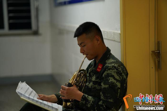 日间搞军事操练,夜间自愿练习、排演,已成为该中队“每部分的默契”。长笛手钱琦帆从最初的“心里抗拒”变为“爱上音笑”。