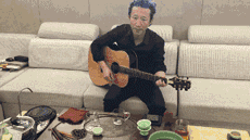 说着朱正在刚摆脱职业台,把眼镜架正在微卷的长发上,顺手拿发迹边的吉他,边弹边聊起他的过去。