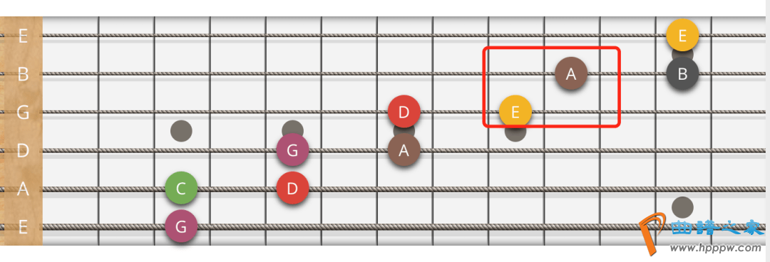 了解了这点自此,那么咱们正在指板上找到音程联系就变得很容易。每一个品德之间的音都是一个幼二度。咱们通过指型推理就可能找到大二度、幼三度、大三度等。
