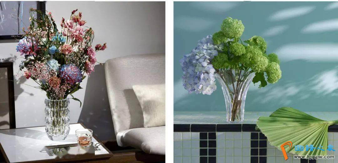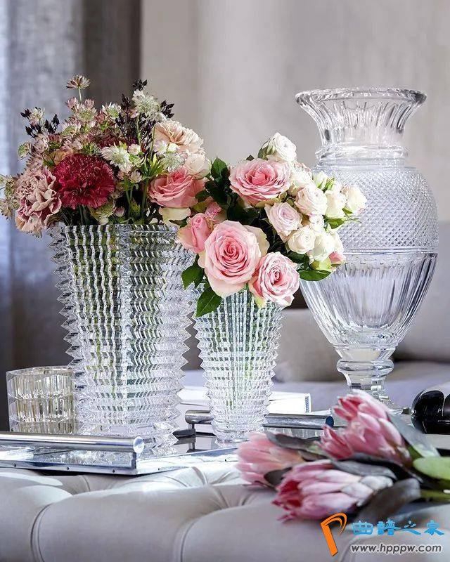 帕丽斯挑选了不少来自Baccarat的水晶花瓶,水晶的绚丽光泽让鲜花愈加唯美注意。