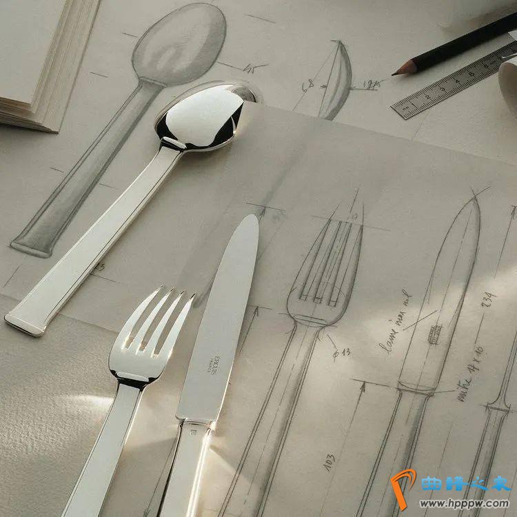 帕丽斯的刀叉餐具被法国的Ercuis承包了,精练厉谨的策画反响出了邃密的品格。材质固然是不锈钢,但如此一套刀叉也必要220美元。